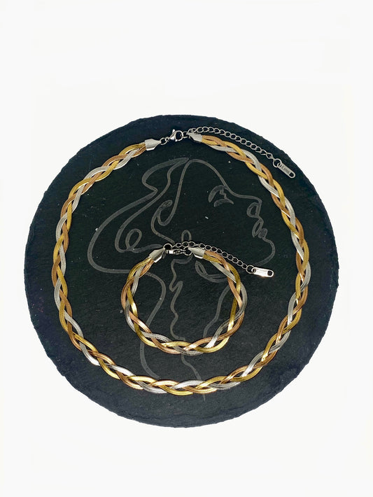 Tri-Colour Snake Chain Plaited Bracelet & Necklace SetVendor:The Bracelet Boutique5.0 / 5.0 (1) 1 total reviews Regular price R 309.00Regular priceUnit price / perR 350.00Sale price R 309.00Sale