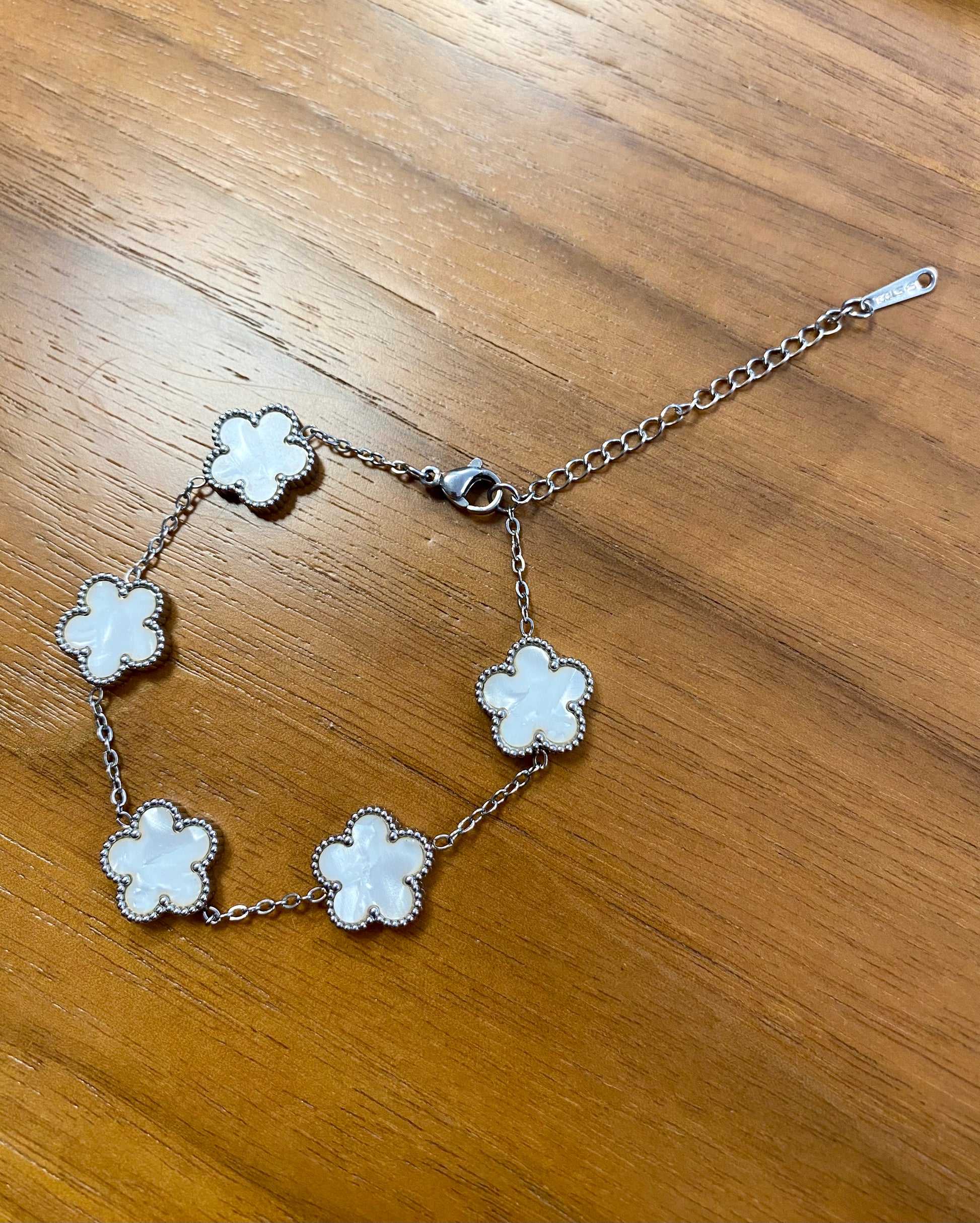 In nature, Five-leaf clovers are incredibly rare as rare as this beautifully crafted bright silver clover bracelet. Add this rare item to your collection which represents love, luck, hope and faith.
